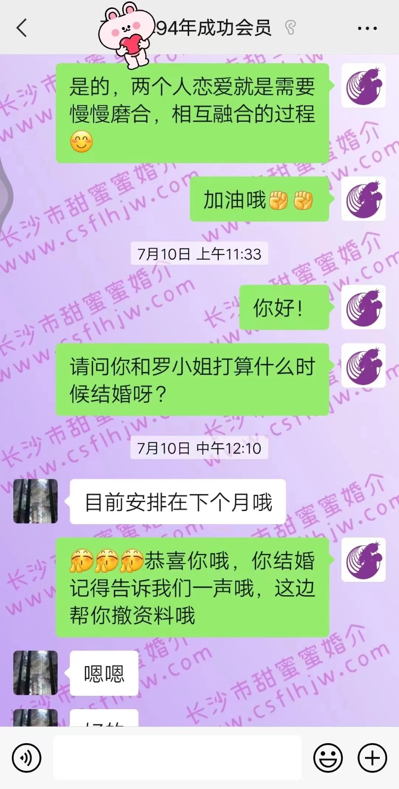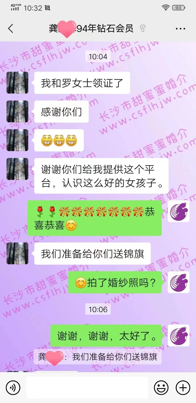 龔先生是一個(gè)國(guó)企在編的職工,大學(xué)畢業(yè)以后,考進(jìn)長(zhǎng)沙一家非常不錯(cuò)的國(guó)企,成為一名在編職員,在長(zhǎng)沙沒(méi)有什么親戚朋友,通過(guò)同事介紹,加入我們公司,成為我們婚戀公司的一名會(huì)員。去年11月份,他在我們專業(yè)紅娘老師的精心安排下,認(rèn)識(shí)了同樣是國(guó)企在編的一名工程師羅小姐,兩人有著相同的興趣和愛(ài)好,聊天也很投機(jī),雙方感覺(jué)特別投緣,經(jīng)過(guò)8?jìng)€(gè)多月的相處和了解,都確認(rèn)了對(duì)方是自己一輩子要找的另一半,于是在8月15號(hào)這天,兩人順利領(lǐng)證結(jié)婚!兩人門(mén)當(dāng)戶對(duì),男才女貌,天作之合。
