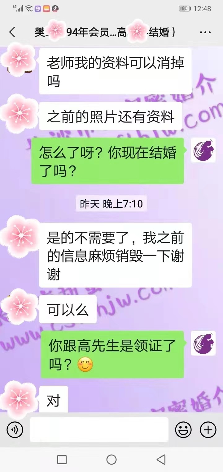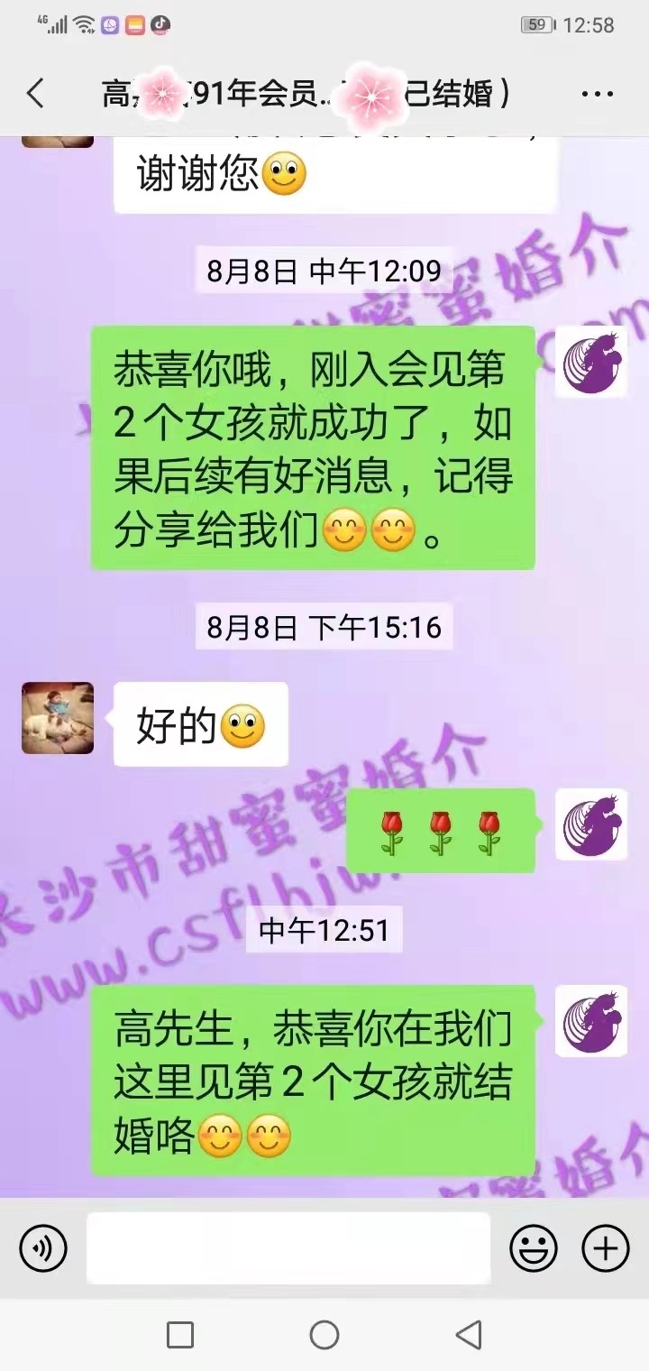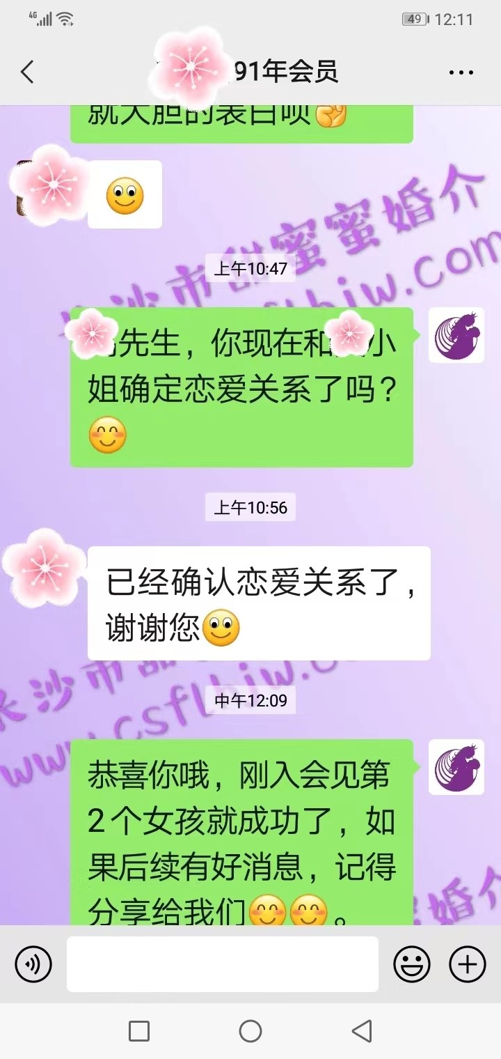 F小姐是我們的鉆石會員,在長沙甜蜜蜜婚戀專家的幫助下,紅娘老師對她進行個性化婚戀指導,1對1精準推薦。終于在見了幾位男士后,收獲了自己的幸福。