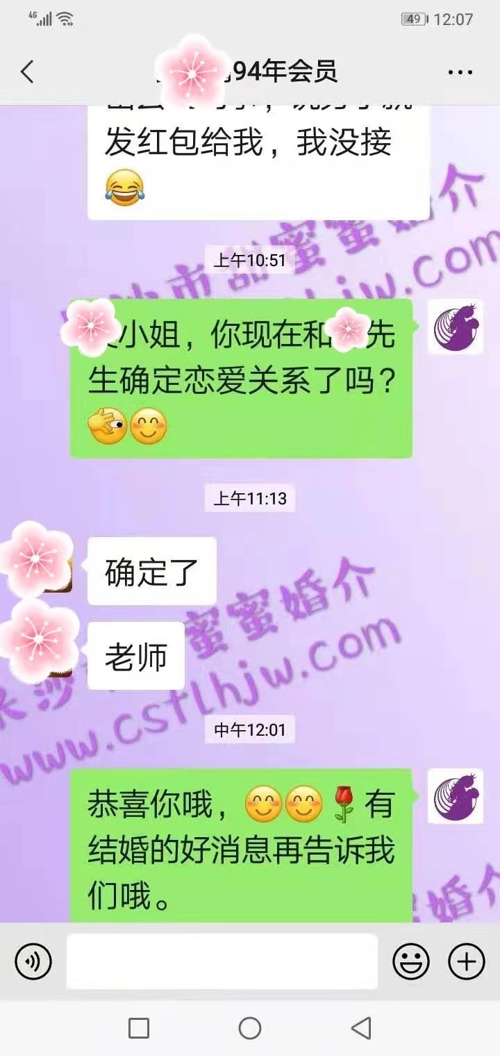在戀愛過程中,專業(yè)紅娘老師針對樊老師的情況,進行了多次的婚戀指導和咨詢,最終使兩人緣定今生!